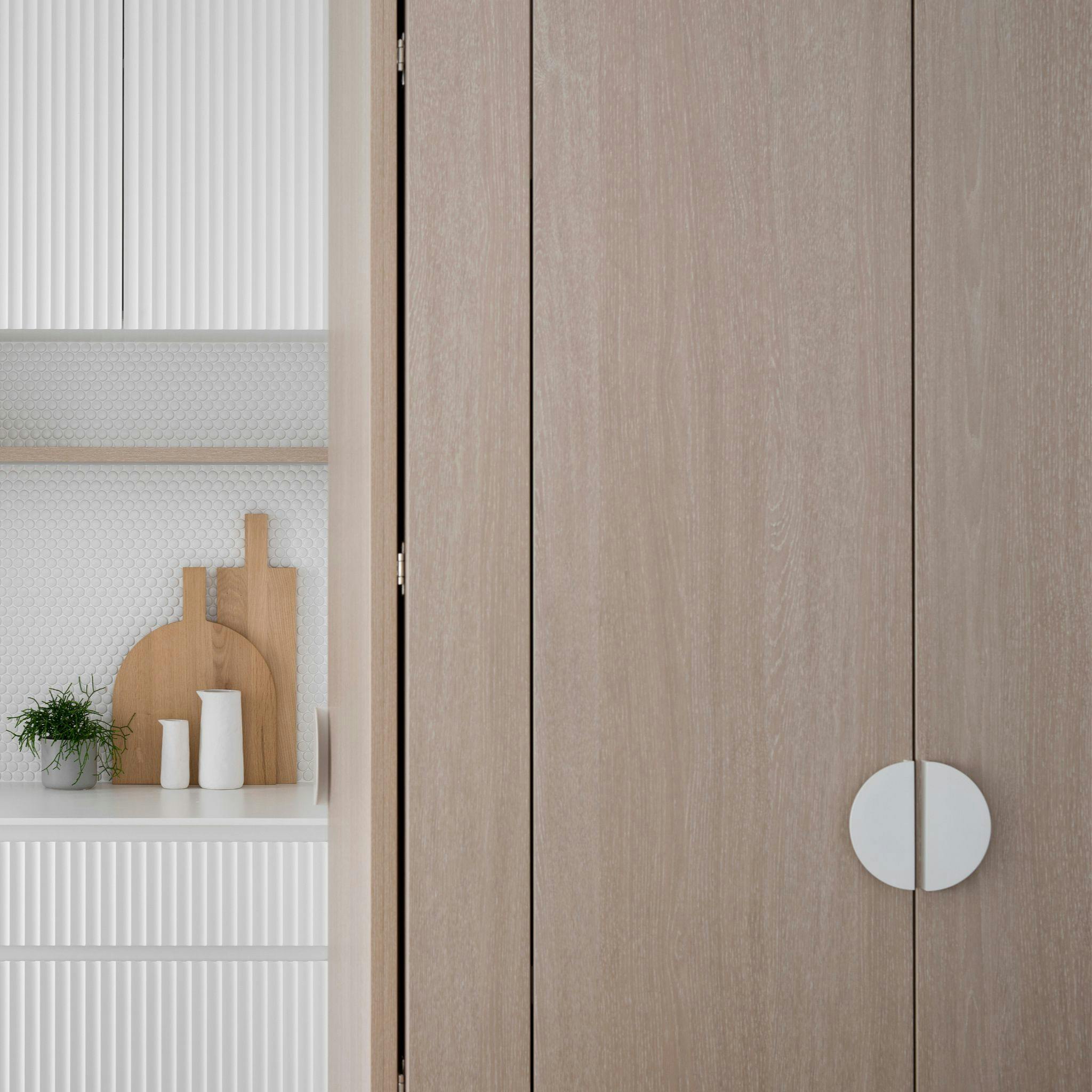 To take your design to the next level, look to Lo & Co's full collection of matching white handles and knobs. Having coordinated finishes and materials really helps create a beautiful, unified look across your space. Visiting our showrooms in Sydney and Adelaide is an excellent way to see these hardware pieces in action, helping you imagine how they can beautifully complement your kitchen cabinetry. Picking matching white hardware across your space will gently tie everything together.